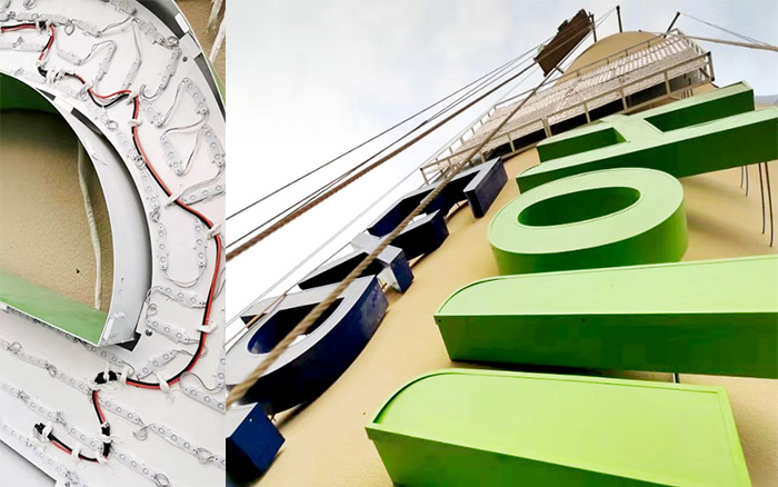 拉布灯箱发光字一般用于超大型户外灯箱,里面结构也有方通焊接而成,因此比传统吸塑灯箱更为牢固,做超大型灯箱产品也不用担心中间下榻问题。