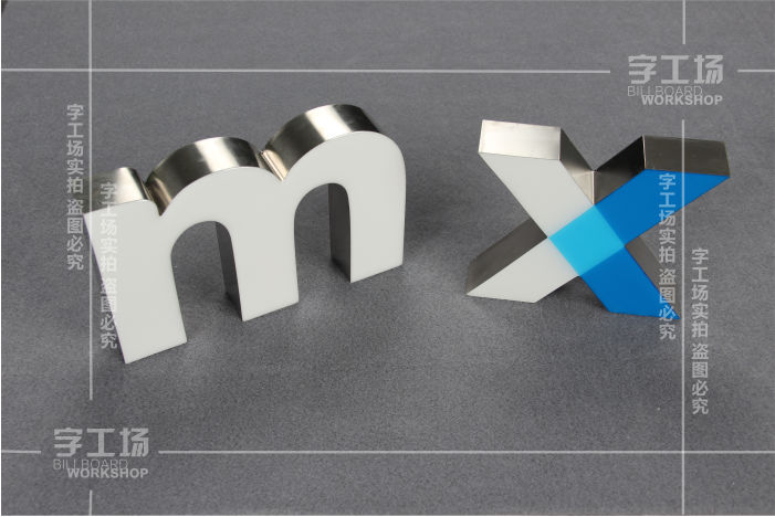 一:打光效果:发光字最主要的就是打光效果了,其效果如何决定了此产品的制作是否成功。作为现今最常用的两种发光字面板材料,成都树脂字产品明显高于亚克力产品。因为树脂字的树脂层有一层匀光层,使光经过直射、折反射后分散均匀,因此成都树脂字打光效果要优秀与亚克力字。