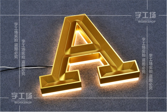 LED也叫金属背发光字,顾名思义,此种发光字的光源安装在金属字壳的背面,光线打在墙上。
