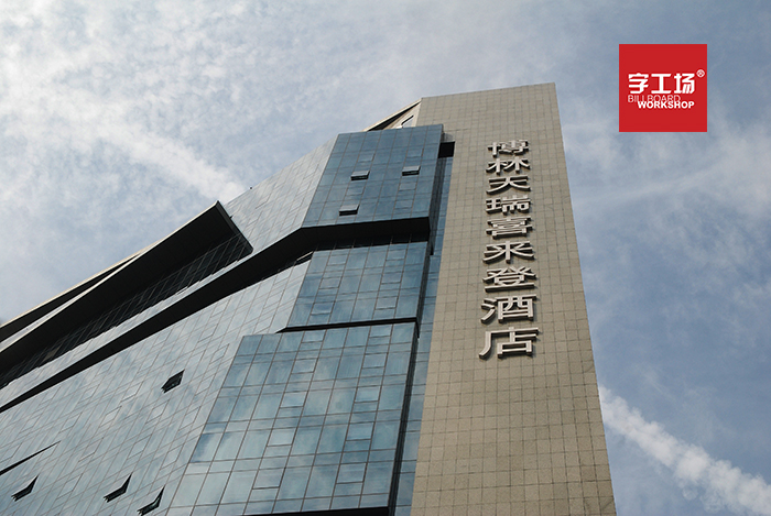 3,从楼顶进行广告字的被认知度情况动身研讨设计字体,字号的装备。应研究规划字体和字体大小之间的关系,以及可传达的视觉距离。