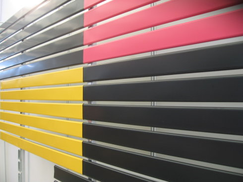 镀锌彩色涂层板和相应的龙骨扣件组成。不同的龙骨可以组装扣件间隙从0到60毫米的效果。由于性价比高,在市