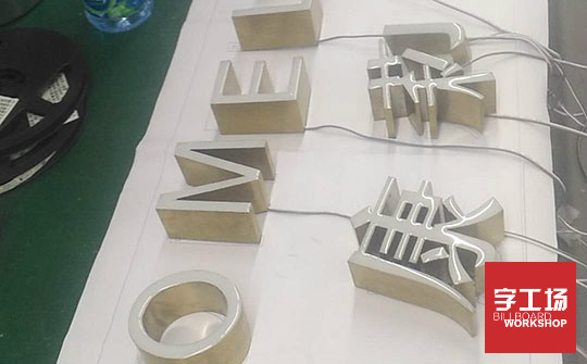 黄色树脂发光字:在一些商场用的比较多,与白色树脂发光字制造工序相同。黄色的树脂发光字用黑色的边框比较的多,黄色的字内置黄色彩的led灯串,晚上能够散发黄色彩的光。