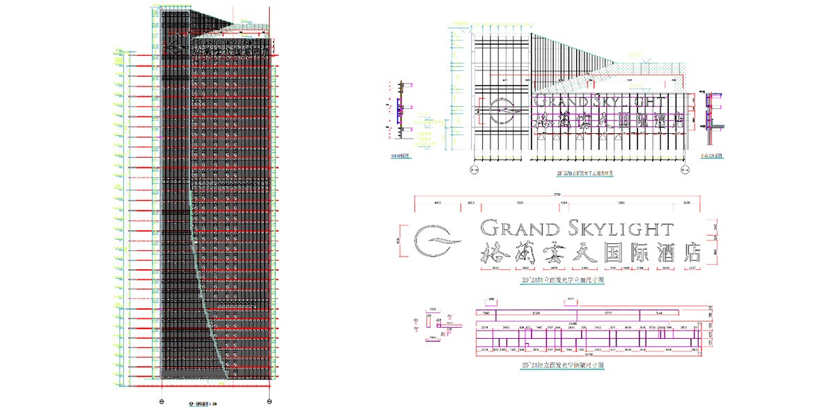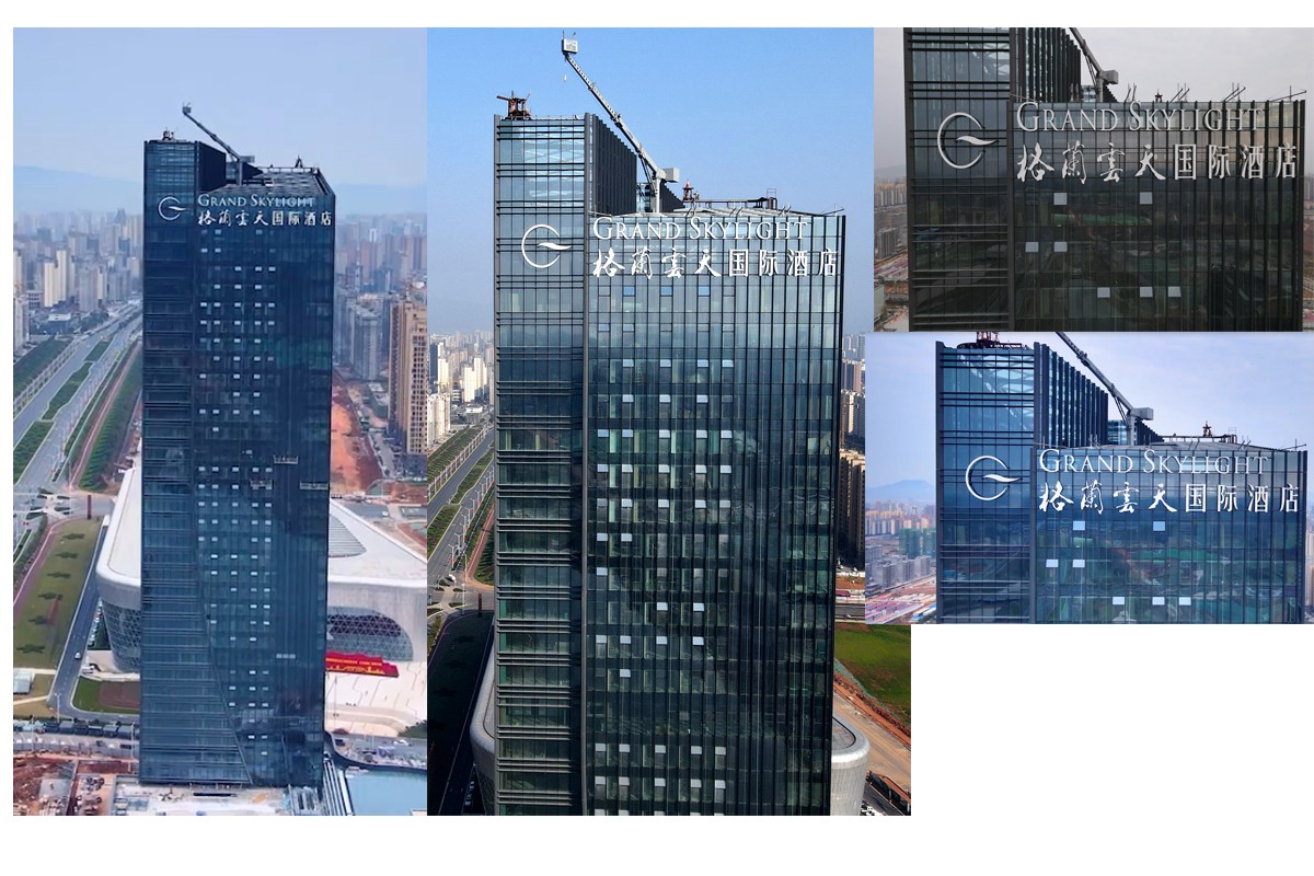 【项目名称】吉安市格兰云天国际五星级酒店玻璃幕墙发光字制作安装工程